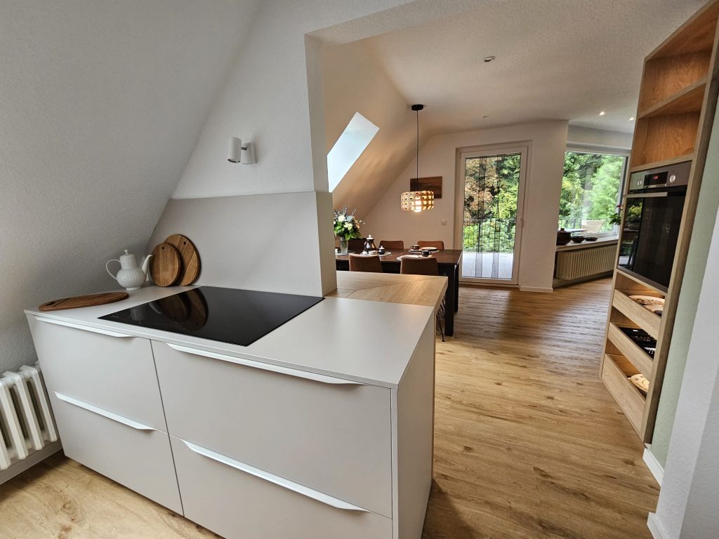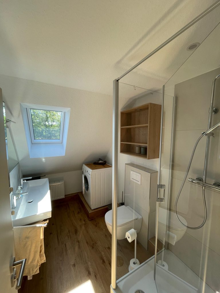 Die neue Küche der Fa. Leicht ist professionell mit einem großen Induktionsherd sowie mit allen Gegenständen und einem Optigrill eingerichtet. Das Bad verfügt zusätzlich über eine Regendusche sowie eine Waschmaschine.